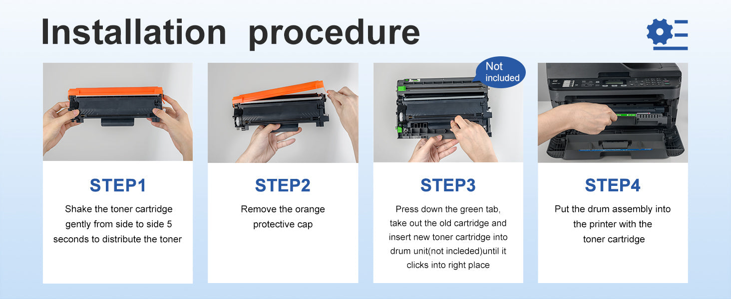 Step4: Put the drum assembly intothe printer with the toner cartridge.